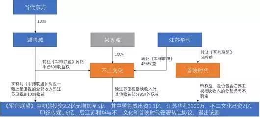 2016年6月不二文化和华利文化签约了一个补充协议,除了电视平台收益,转让45%的收益权给吴秀波的不二文化,盟将威也将转让50%的收益给不二文化,而这个协议由张坚全权处理。