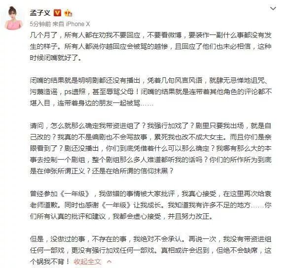 比较透明的演员戏份多就要小心被指“带资进组”了,孟子义就否认过自己强行加戏。