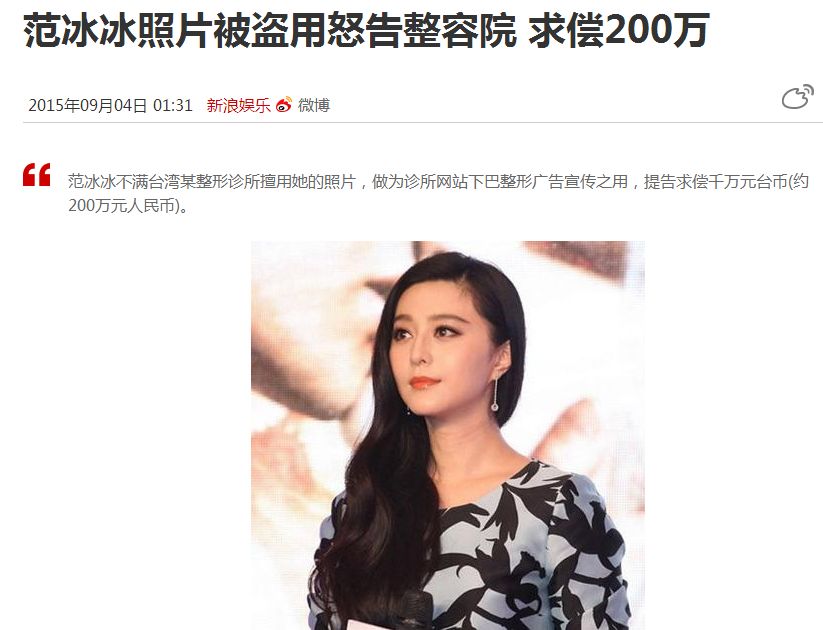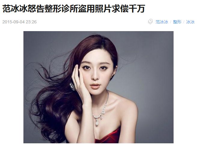 不少整形医院都喜欢偷偷用范冰冰的脸作为广告模板,虽然被范冰冰一告一个准。