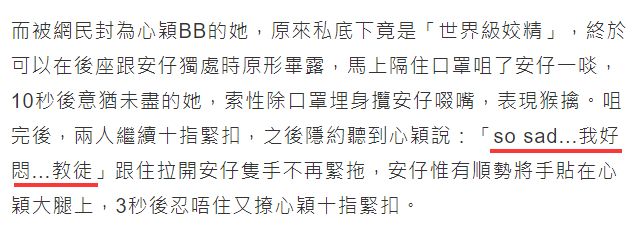 但是这次在视频里,黄心颖隐约说了一句“So sad…我好闷,教徒”,不知道是不是她对许志安的昵称。也挺讽刺。