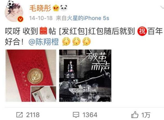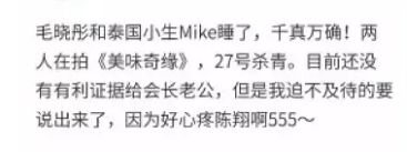 很快,毛晓彤的朋友微博爆料,陈翔和毛晓彤分手才不是说得这么好听,明明就是陈劈腿被捉奸。