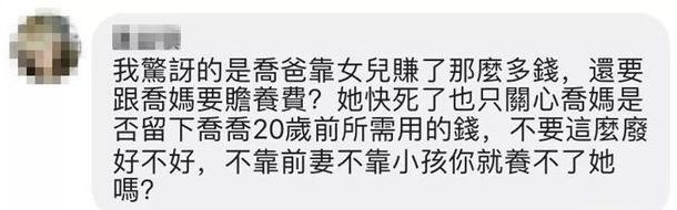 但网友并不买账,因为乔爸靠女儿赚了很多钱,但他居然还要跟乔妈要抚养费,而且乔乔以前跟乔妈关系好,现在却变了,也令人觉得匪夷所思。