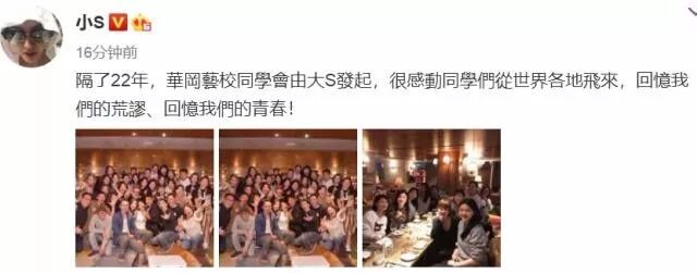 今年年初,大S发起了华冈艺校同学会,许多同学从各地飞回来共聚。