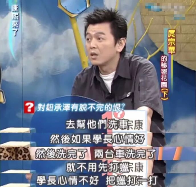 心情不好,学长们还会随便找个学弟出来奴役,第六期的学弟庹宗康就被三人整得很惨,经常在上课时被钮承泽喊出去洗车、打蜡……