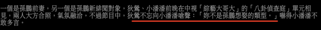 结果狄莺本人在上《娱乐我最大》呛声小潘潘“你不是孙鹏想娶的类型”,吓得小潘潘不敢回嘴。