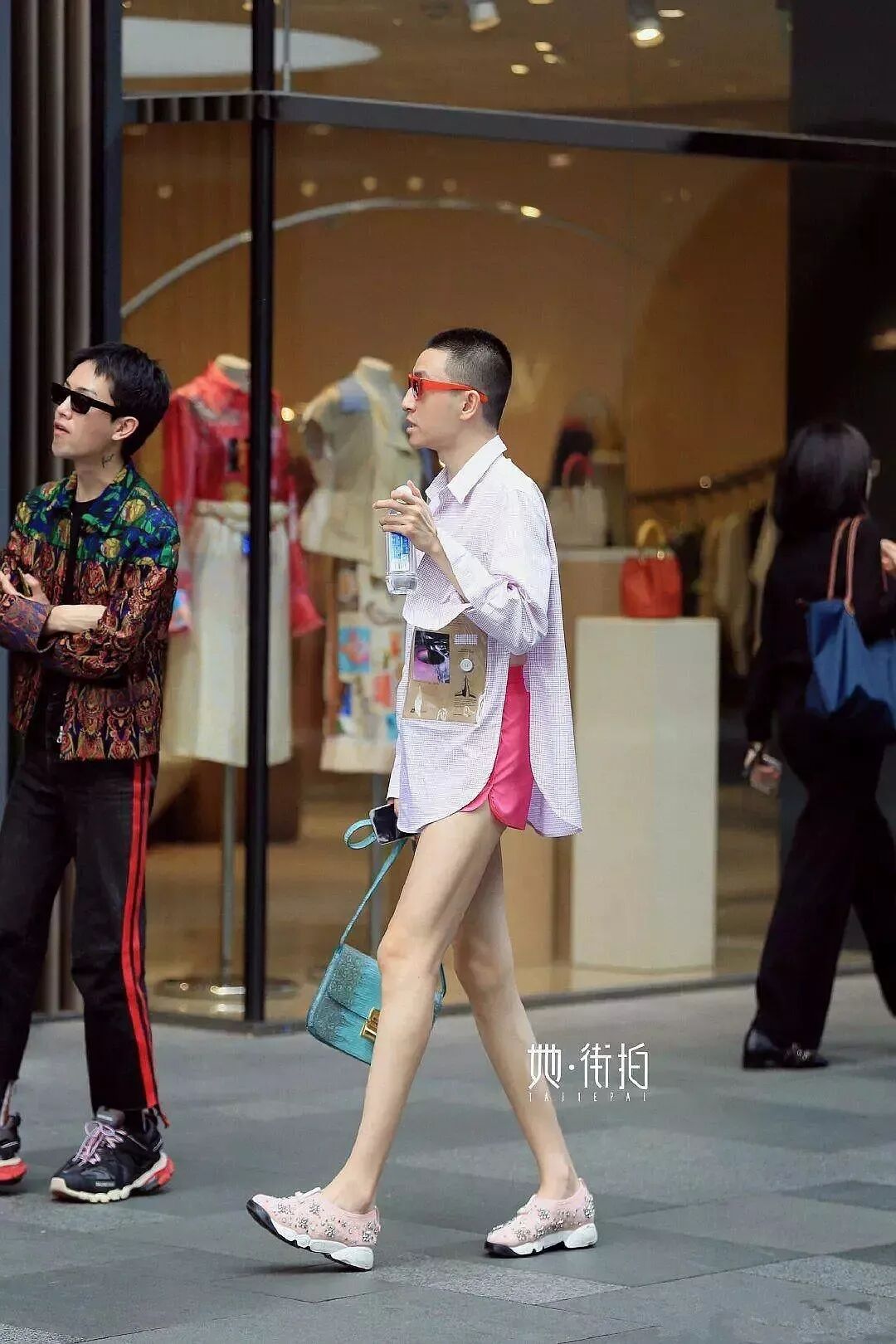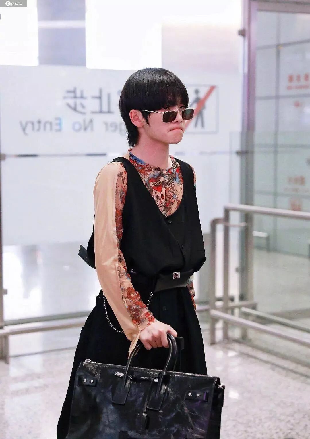 他在机场的这一身造型被吐槽是姨系爱豆,翻译过来就是穿得很女性化,并且不怎么时尚。