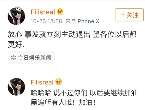 最终还是杠不过粉丝,主动辞职了。