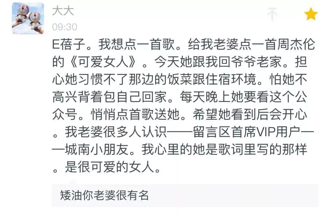 今天早上不小心在后台吃了一嘴狗粮,但我还是很乐意把《可爱女人》送给可爱的城南小朋友,祝你们每天都这么甜!