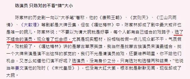陈家林导演说过:选演员,没有身价之分,只有选对和选错两种结果。