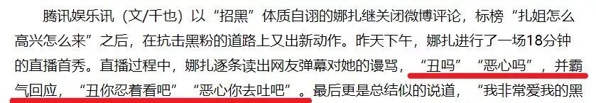 娜扎无论上综艺、公布恋情都被骂,骂到路人都看不下去,娜扎也出来做直播呛黑粉。