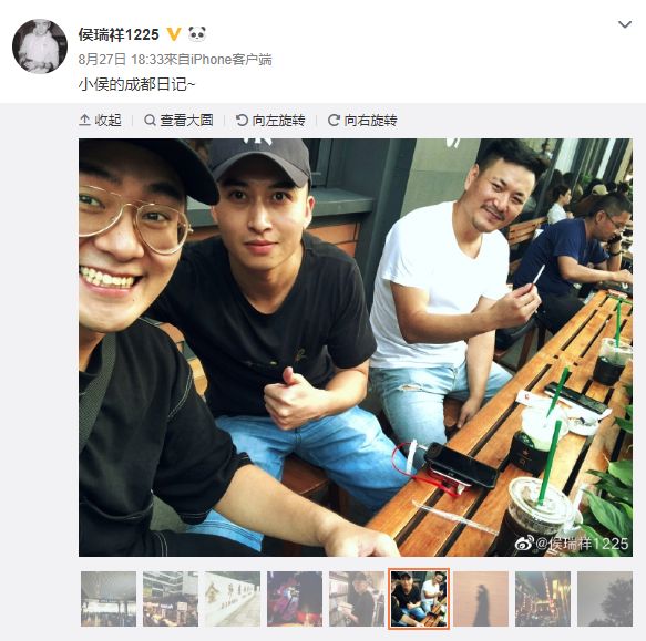 他的舍友廖诗琅来自成都,演过《永乐传奇》,微博经常给同学转发和点赞,袁百、娜扎、周冬雨……都有。侯瑞祥今年旅游还跑去成都找他了。