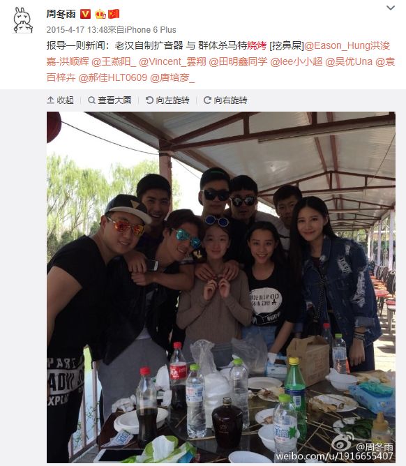 但再往前翻会发现,周冬雨本来就是个网瘾少女,她的很多大学同学更是“微博控”,同学之间有些关系也很……错综复杂。