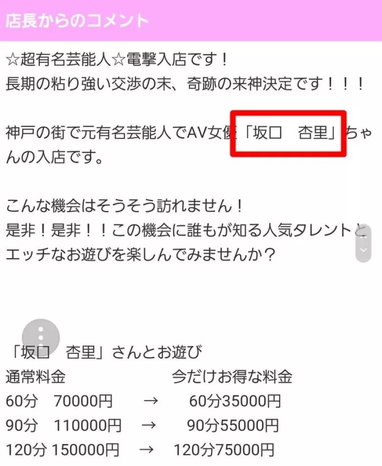 为了赚钱继续供养牛郎,坂口杏里先是推出清凉写真,后来竟然到神户一间色情酒吧做高级应召女郎,一小时收费声称约4499人民币。