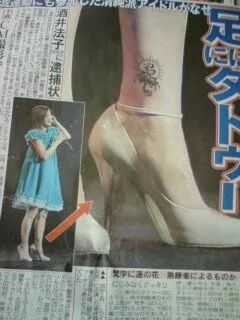 2004年曾有记者发现酒井法子一反清纯人设,身上好几处地方都出现了怪异的纹身。