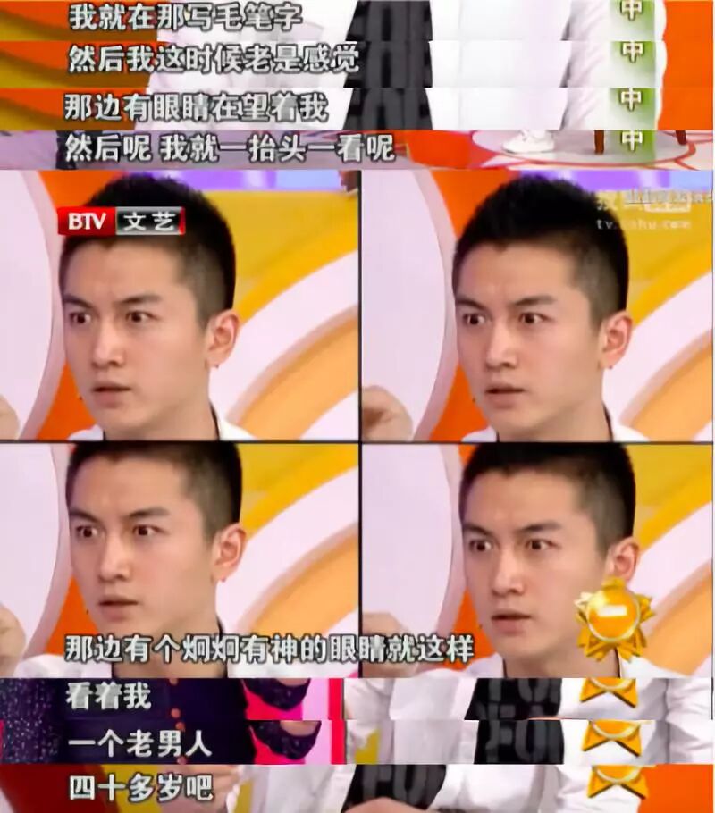 十岁上书法课,有天他看到窗外有个老男人盯着他,以为对方是人贩子,和他对视了几秒后继续练书法。