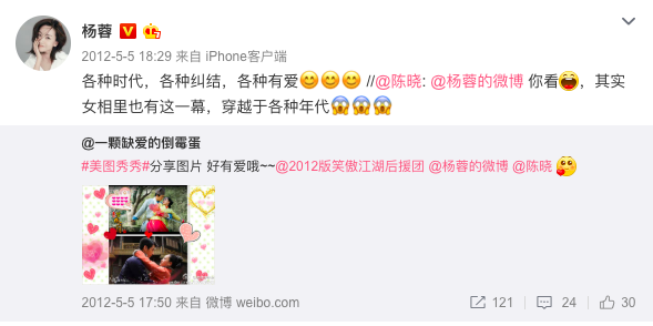 分手后陈晓也传过一些绯闻,比如和网店店主贴脸↓但女方澄清是“兄妹”关系。