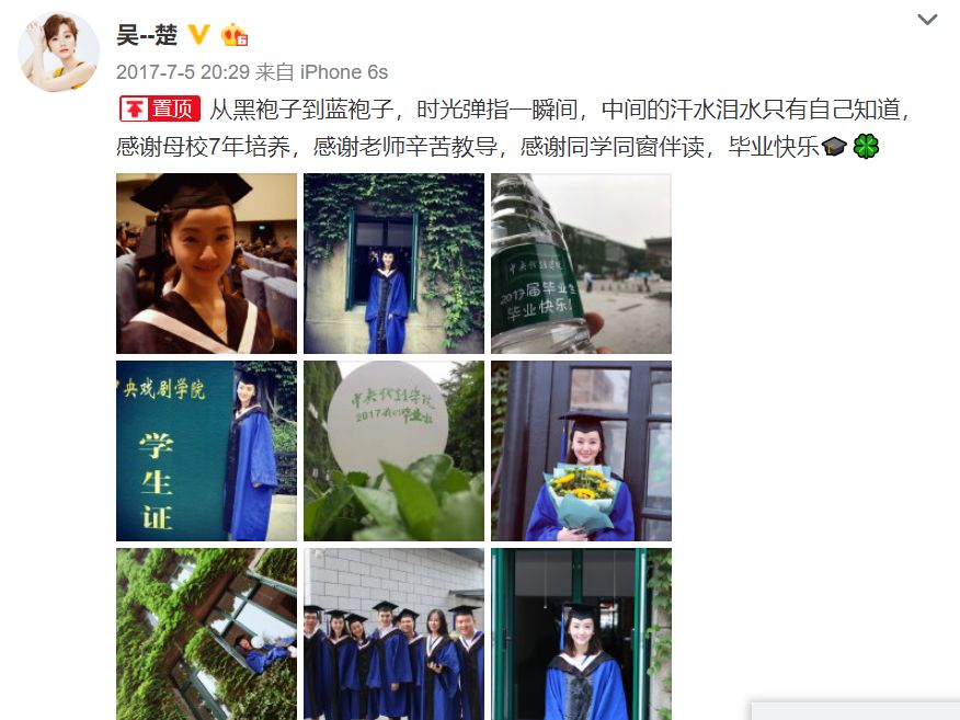 一年后,吴楚又回中戏修读研究生,2017年拿到了学位证书。