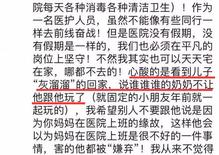 还有医务工作者发朋友圈,称自己在前线奋战,而同小区的家长却教唆自家的孩子孤立自己的儿子……