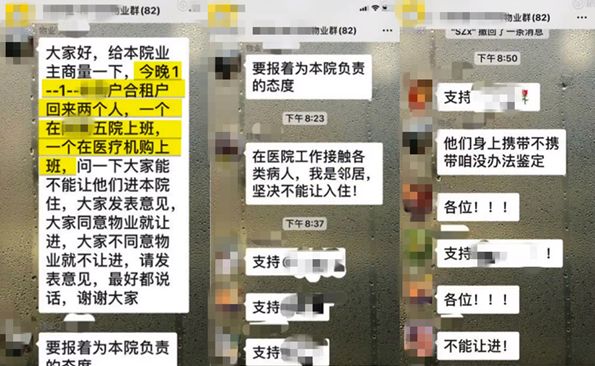 甚至有的小区业主群公开投票,全员通过了“禁止医护人员回小区居住”的提议。