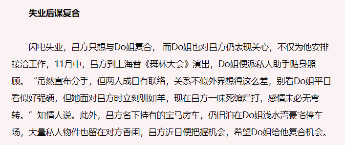 不过当时Do姐力撑吕方,主动邀请吕方和王敏慧到自己主持的电台节目里澄清。
