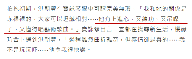 没想到今日,洪朝丰却突然出柜,证实当年宝咏琴的爆料。