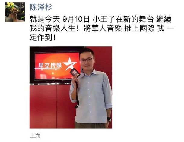 而人在华纳的陈泽杉“十分难过”地强调,自己才没有“骗”,是蔡依林自愿委托大声签的,我们华纳也绝对不会跟蔡依林有任何合作呦。