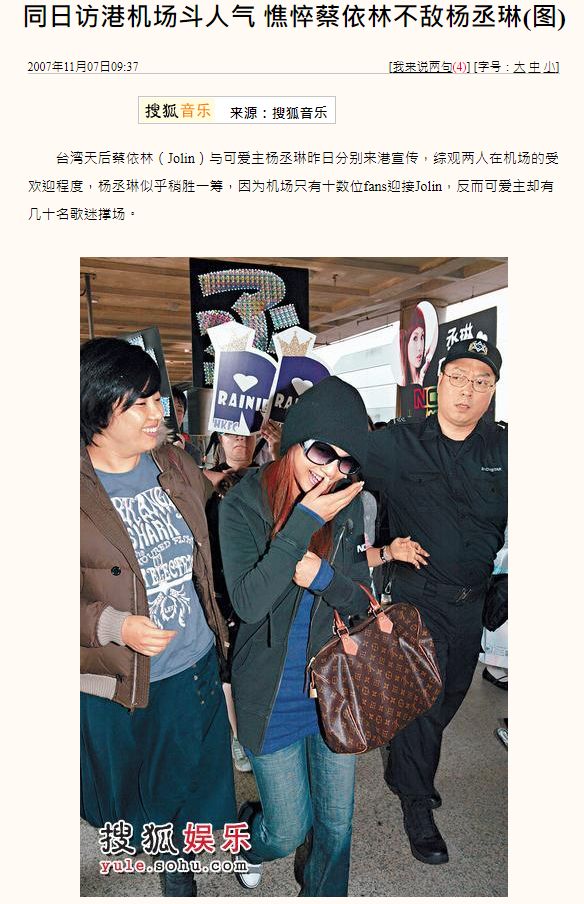 被买榜新闻折磨得精神憔悴,蔡依林到香港宣传,接机粉丝还比杨丞琳少,被媒体嘲讽“口爱吃香,G奶失效”。