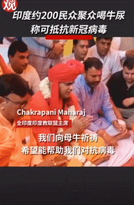 因为牛在印度是神圣的动物,印度教徒相信牛尿可以保护他们。专家们只能反复强调:真的没有证据表示它能预防新冠病毒。