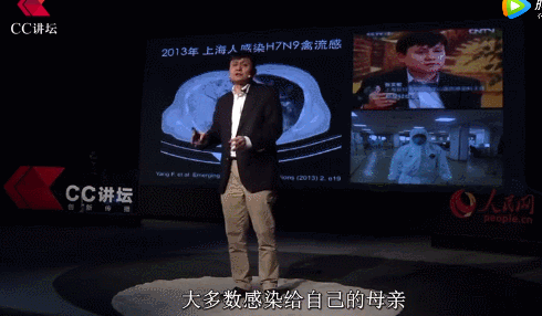 2020年1月CC讲坛,张文宏解释H7N9是有限人传人病毒,只有亲密接触才会感染,而在他研究的病例中,多数人都是感染给自己的母亲却不是老公。