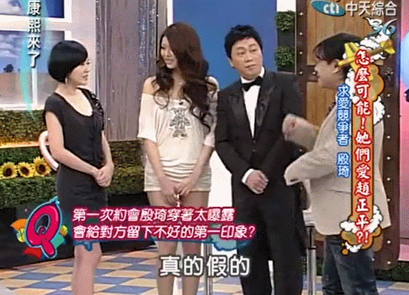 小梁哥是《康熙》联谊会常客,在一期节目上说想追Makiyo,最后两人还来了个安全之吻。