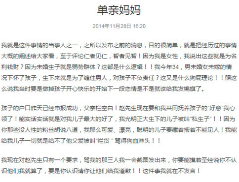 最终,这场闹剧以孩子父亲栏空白、女方不收任何抚养费告终。