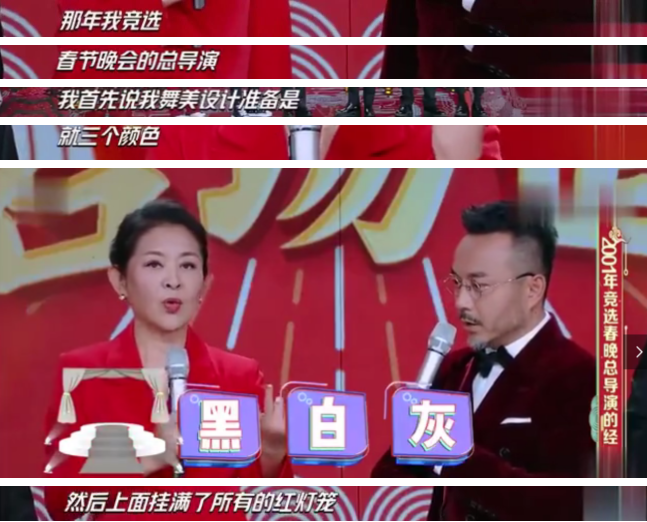 2011年,她还跑去竞选春晚总导演,提出了很多大胆的构思,比如舞美设计黑白灰,上面再挂红灯笼。