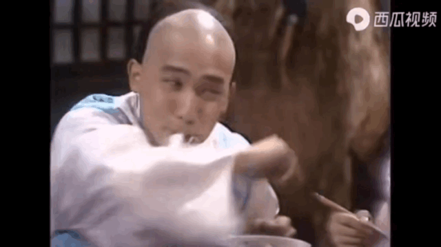 但吃不仅是吃本身,食物也可以是重要的道具,一处的桌面上是花生,二处的桌面上是烧鸡,这便是两种不同的生活状态。