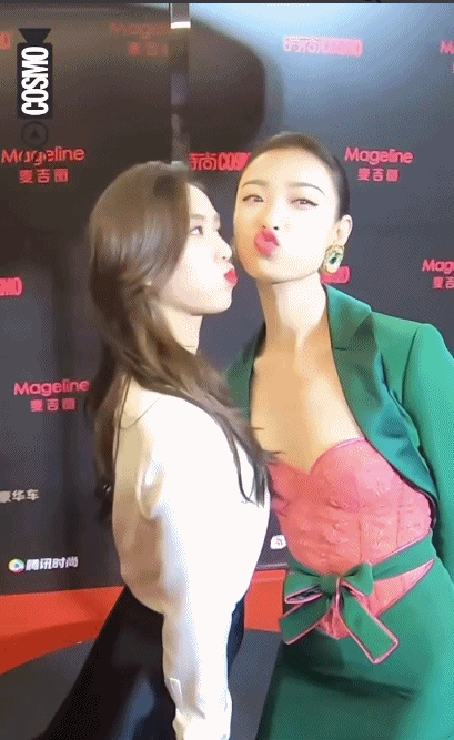 不仅和杨幂倪妮甜甜蜜蜜,刘诗诗与唐嫣也被媒体抓拍到在台下捂嘴聊天,看起来关系很不错。