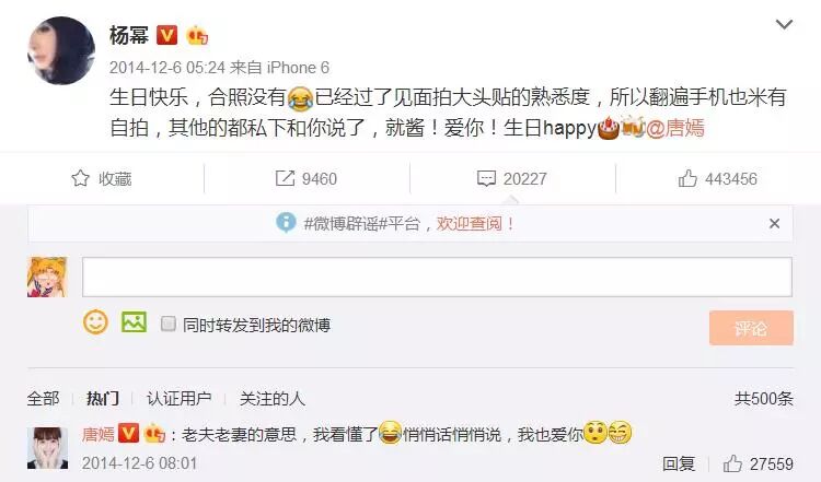 生日期间互相送祝祝福更是常规操作 ,唐嫣更形容和杨幂的关系是“老夫老妻”。