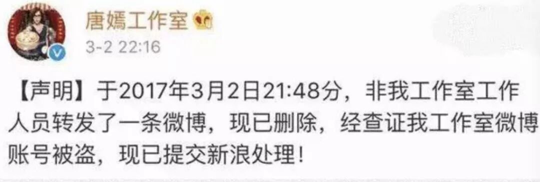 之后唐嫣工作室就发微博声明说这条微博不是自己转发的,但很多网友都不相信这个说辞了,毕竟两人都沦为塑料姐妹花了。