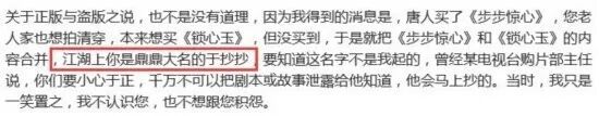 不但暗讽于正是挑货,该篇文章还解释了于正拍《宫》的的原因是没买到版权,干脆自己抄了一篇出来,直接训斥于正是“于抄抄”。