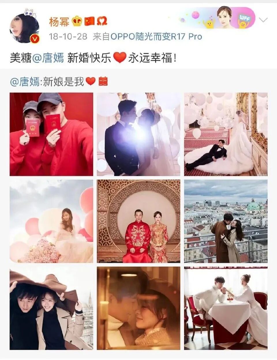 而唐嫣2018年结婚杨幂虽然也发微博送上祝福,但唐嫣并没有邀请她,“蜜糖CP”BE得彻彻底底,再没好起来。