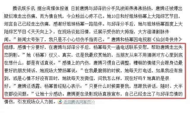 唐嫣当时接受采访时,也坦言在失恋的时候给自己最大安慰的就是杨幂。