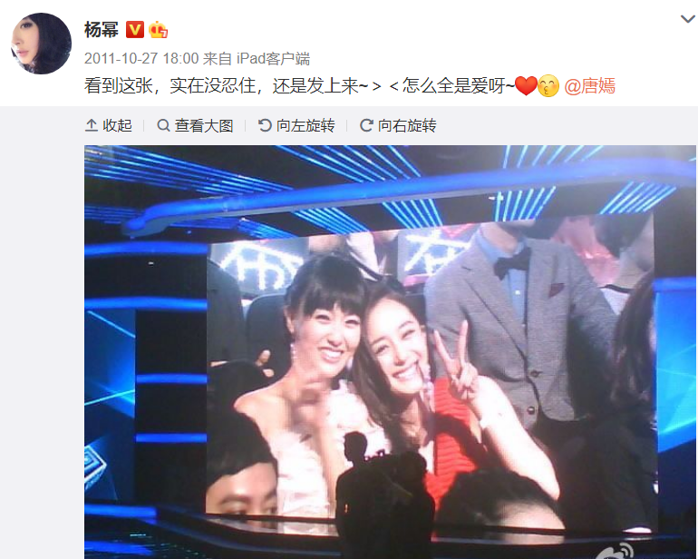 上面提到当时刘诗诗没有站队,胡歌站了老板,而唐嫣呢,则是直接发微博力挺杨幂。