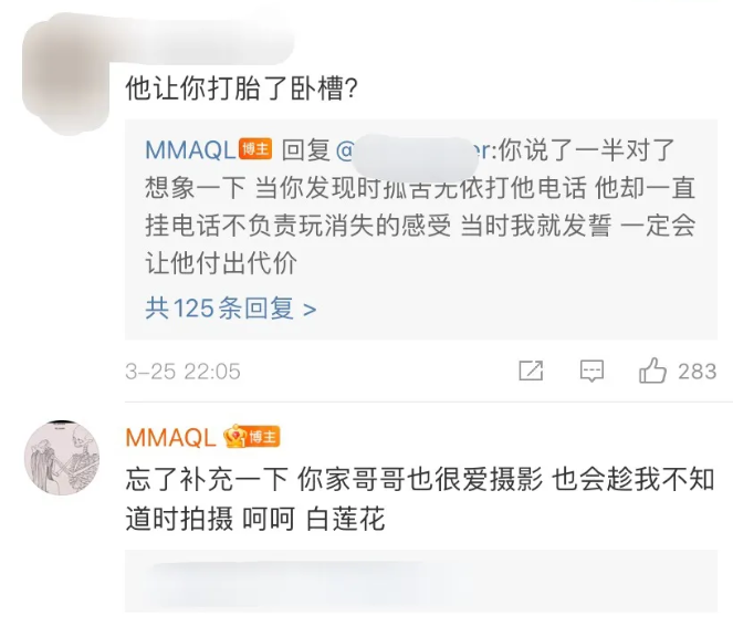 而嫂子里锤最狠的可能是嘉羿的前女友奶绮,直接投稿《青春有你》相关bot冲击kpi,爆料对方因为不戴套致其堕胎两次还上环。