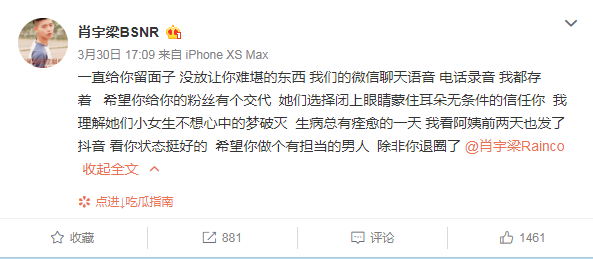 MMAQL也有放出自己的诉求,除非肖宇梁退圈,不然她手里有的是能让他难堪的证据……