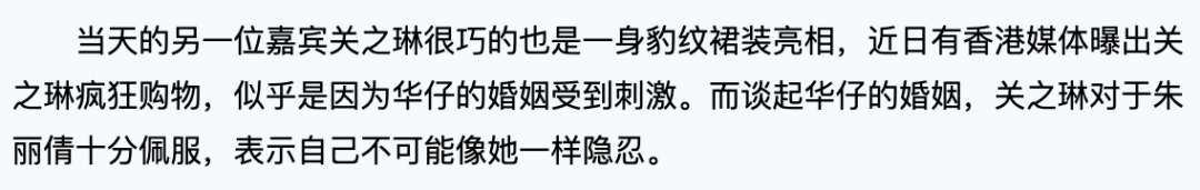 连刘德华的绯闻女友之一的关之琳都表示佩服,说自己不可能像她一样隐忍。