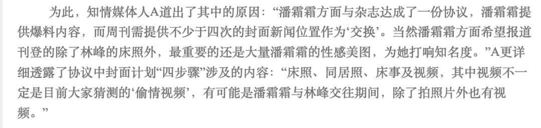 她一个月连续四次登上某周刊封面,有知情媒体人爆料,她与杂志达成协议,自己负责爆料,周刊则提供不少于四次的封面新闻位置作为交换。