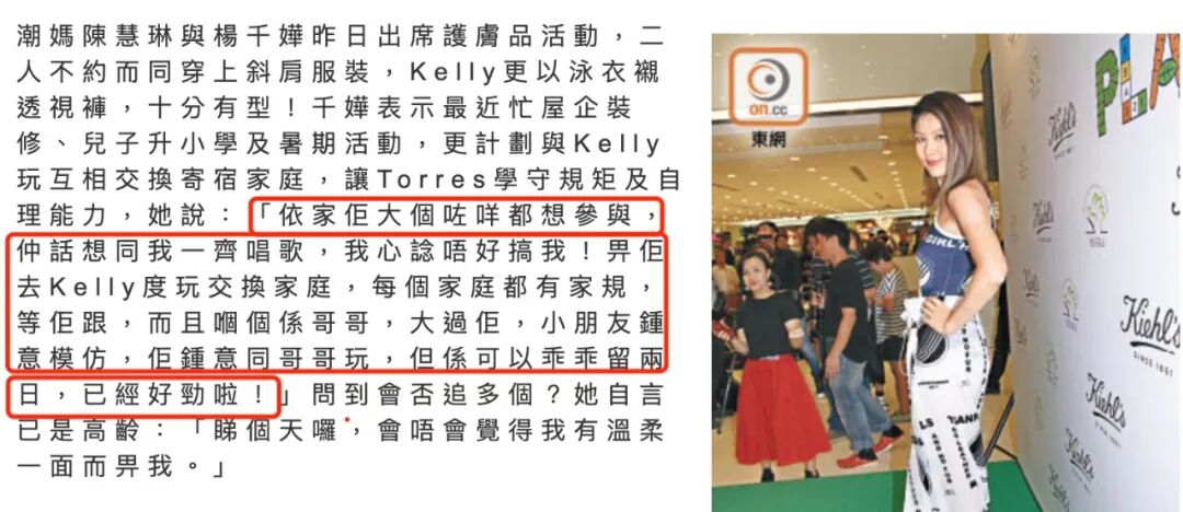 好到什么程度呢?成为妈妈之后,杨千嬅甚至说想将自己的孩子送到陈慧琳家里去暂住,希望自己的儿子可以和陈慧琳的儿子一起玩。