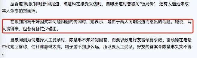 2006年陈慧琳做客《志云饭局》时,还被问了多次圈内好友名单,也没cue到杨千嬅,又引网友联想。