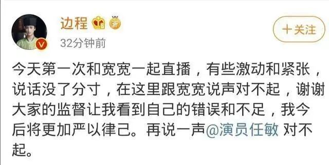 戏外,边程本人的表现却让不少粉丝迅速下头。