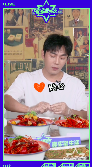 秦昊则爱做吃播,一边和粉丝聊天一边啃小龙虾。