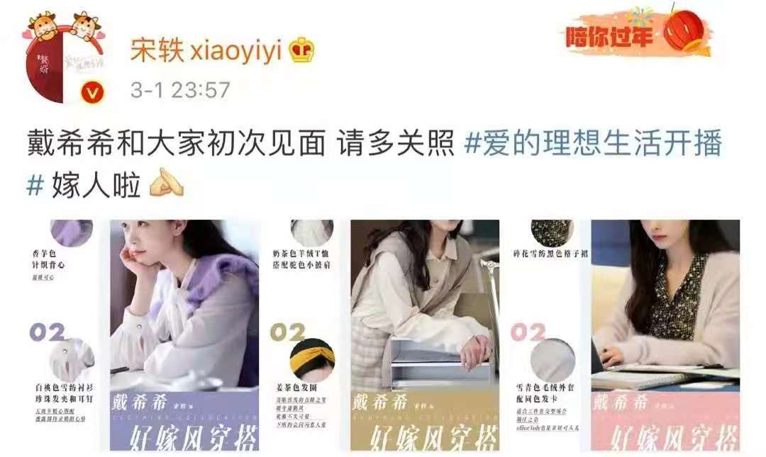 可惜剧中造型平平,甚至《爱的理想生活》里宋轶的造型还因为剧集宣传“好嫁风”翻了车。