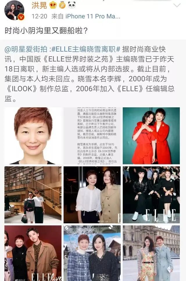 而洪晃这边呢,记仇的小本本一直记了很久,2019年晓雪从Elle杂志离职,洪晃还不忘转发微博:时尚的小阴沟里又翻船啦?